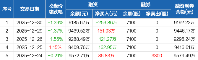 兰卫医学:融资净偿还253.86万元,融资余额9185.67万元(12-30)
