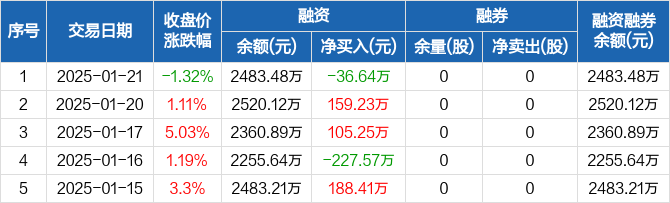 匠心家居:融资净偿还36.64万元,融资余额2483.48万元(01-21)