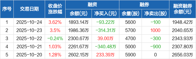 匠心家居:融资净偿还93.22万元,融资余额1893.14万元(10-24)