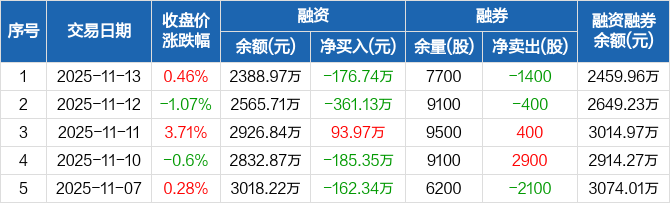 匠心家居:融资净偿还176.74万元,融资余额2388.97万元(11-13)