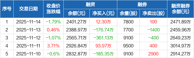 匠心家居:融资净买入12.3万元,融资余额2401.27万元(11-14)