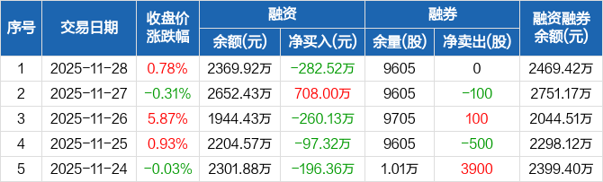 匠心家居:融资净偿还282.52万元,融资余额2369.92万元(11-28)