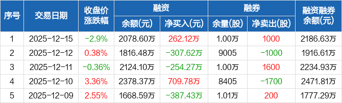 匠心家居:融资净买入262.12万元,融资余额2078.6万元(12-15)