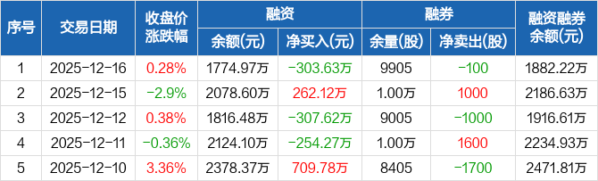 匠心家居:融资净偿还303.63万元,融资余额1774.97万元(12-16)