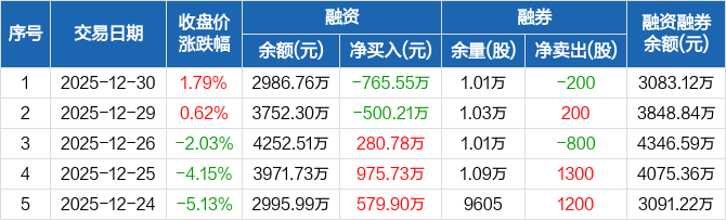 匠心家居:融资净偿还765.55万元,融资余额2986.76万元(12-30)