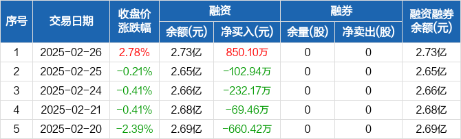 上海艾录:融资净买入850.1万元,融资余额2.73亿元(02-26)