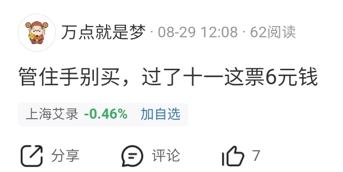 郑重声明:用户在财富号/股吧/博客等社区发表的所有信息(包括但不限于文字、视频、音频、数据及图表)仅代表个人观点,与本网站立场无关,不对您构成任何投资建议,据此操作风险自担。请勿相信代客理财、免费荐股和炒股培训等宣传内容,远离非法证券活动。请勿添加发言用户的手机号码、公众号、微博、微信及QQ等信息,谨防上当受骗!