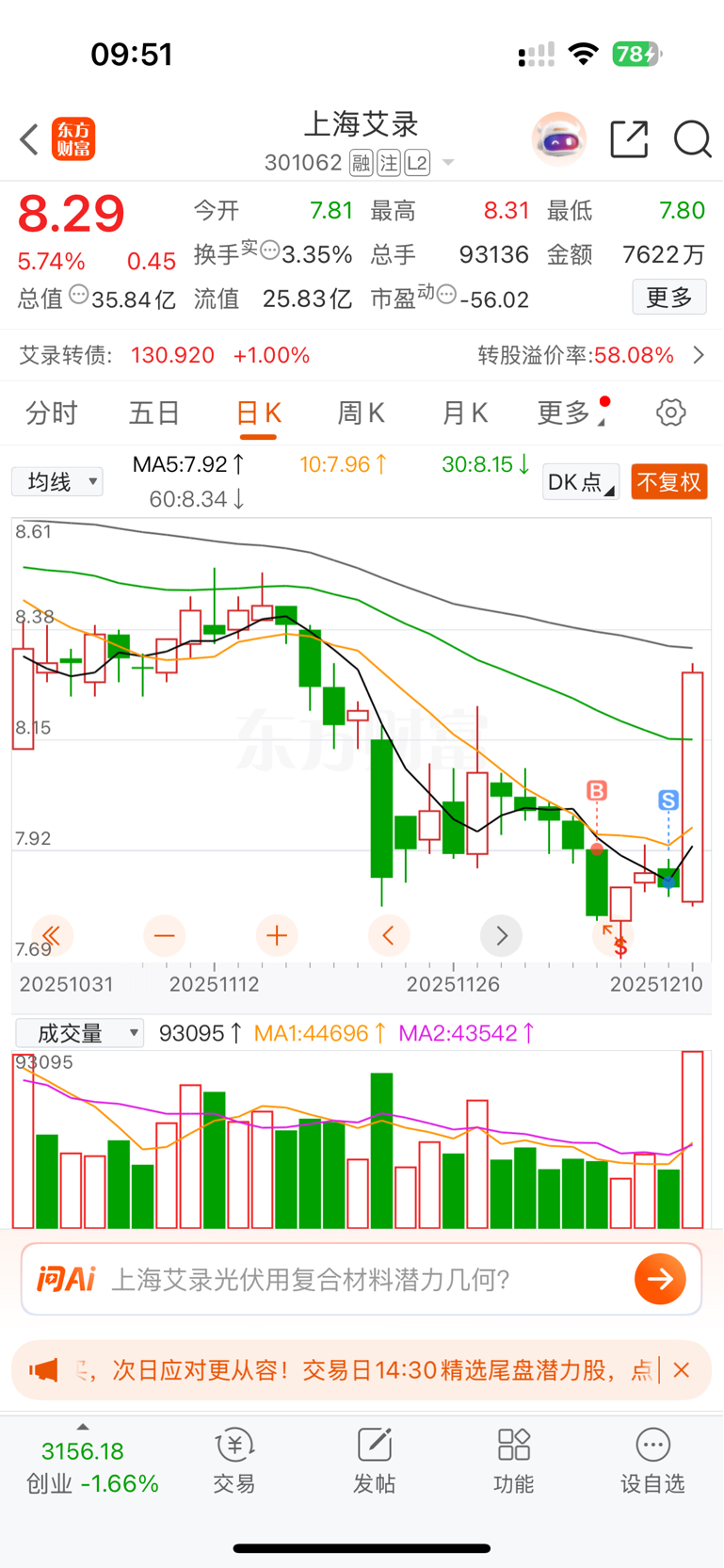 $上海艾录(SZ301062)$ 主力就盯着我这三瓜两枣?
