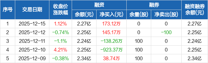 上海艾录:融资净买入173.12万元,融资余额2.27亿元(12-15)