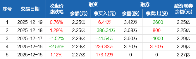 上海艾录:融资净买入6.41万元,融资余额2.25亿元(12-19)