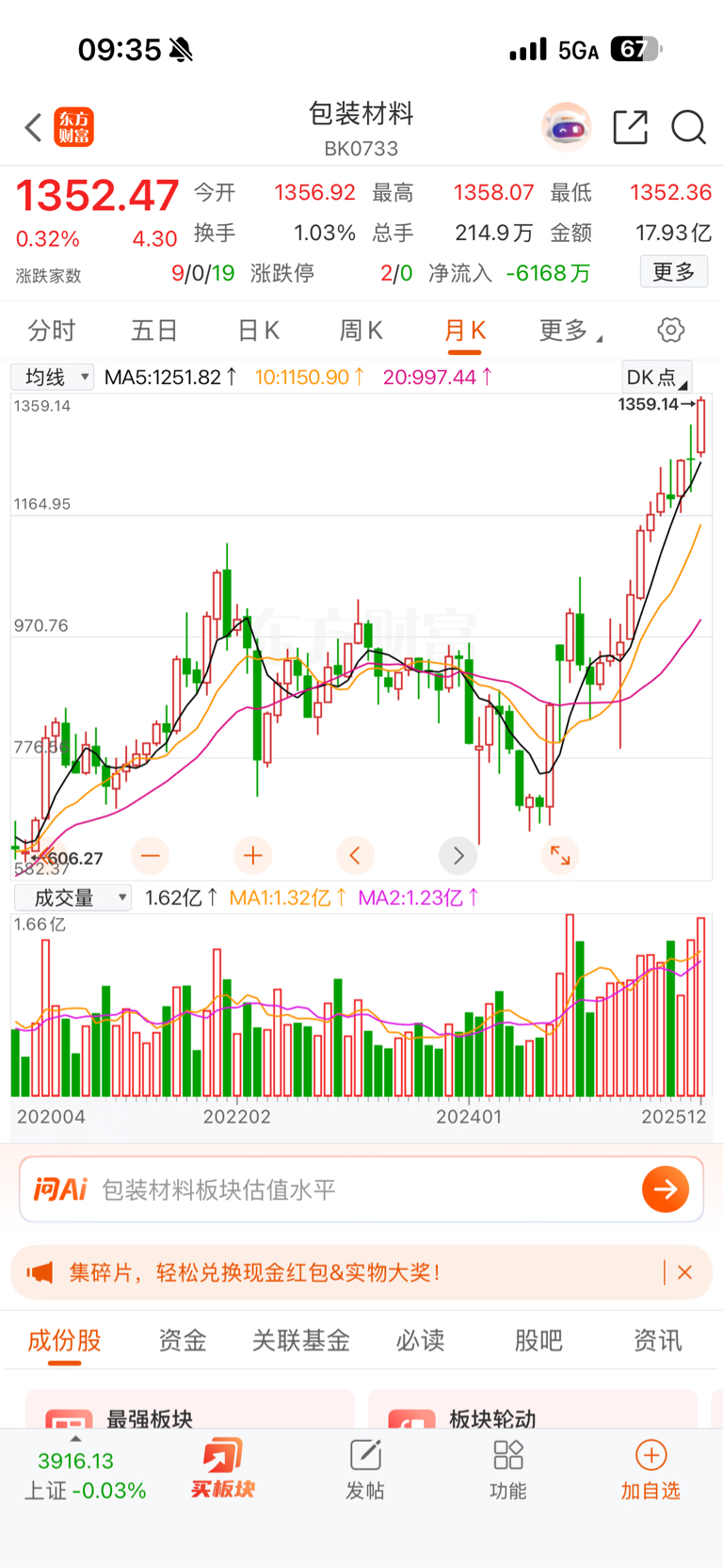 大家方向没错,只是选错了股票,其实包装业今年还是涨势喜人。