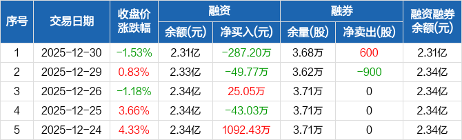 上海艾录:融资净偿还287.2万元,融资余额2.31亿元(12-30)