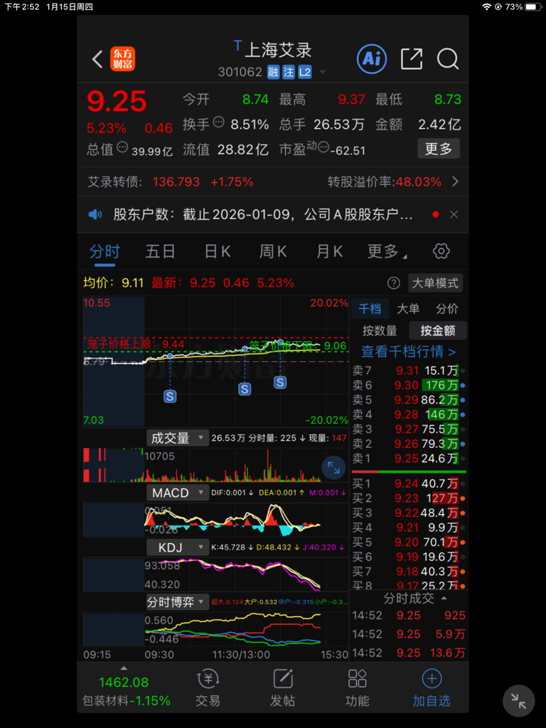 $上海艾录(SZ301062)$ 卖了,等回踩再来