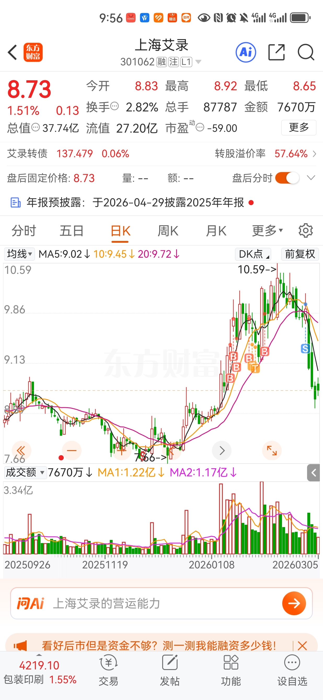 $上海艾录(SZ301062)$ 我以为他要启动了,一路买!最后买了50万拿一个多月挣了3000块