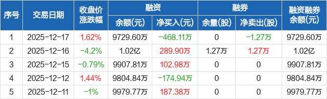 海锅股份:融资净偿还468.11万元,融资余额9729.6万元(12-17)