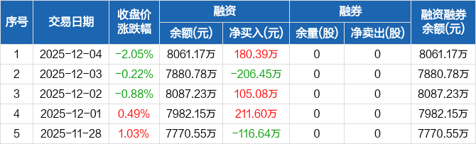 本立科技:融资净买入180.39万元,融资余额8061.17万元(12-04)