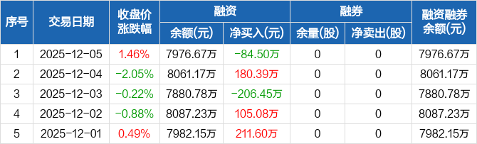 本立科技:融资净偿还84.5万元,融资余额7976.67万元(12-05)