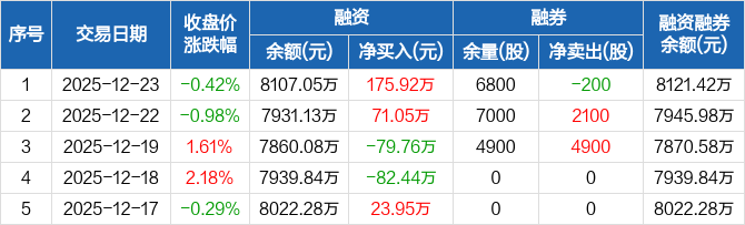 本立科技:融资净买入175.92万元,融资余额8107.05万元(12-23)