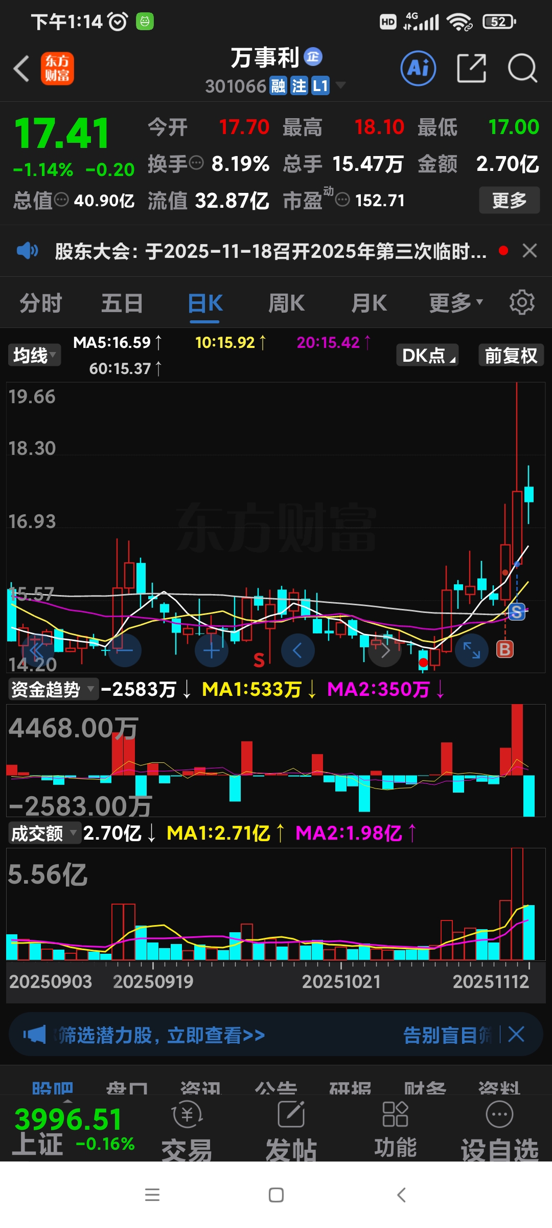 $万事利(SZ301066)$ 又是几分钱跑路,错过二十个点#股市怎么看# #实盘记录#