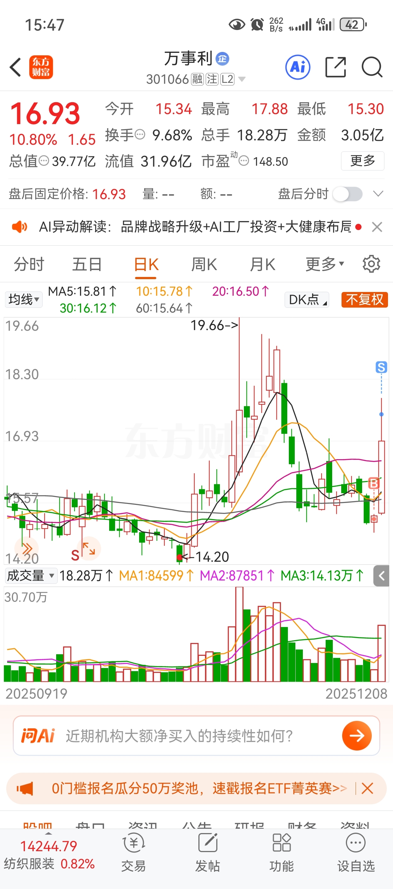 $万事利(SZ301066)$ 牛逼,祝留下的铁铁发财!