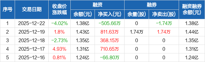 万事利:融资净偿还505.66万元,融资余额1.38亿元(12-22)