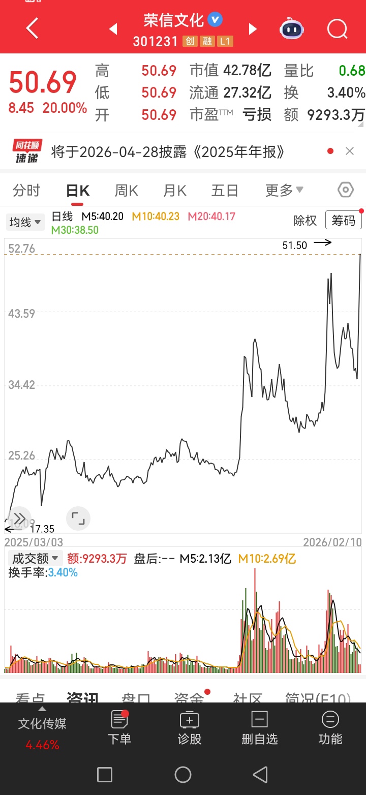 看人家荣信文化还不如万事利,人家暴涨
