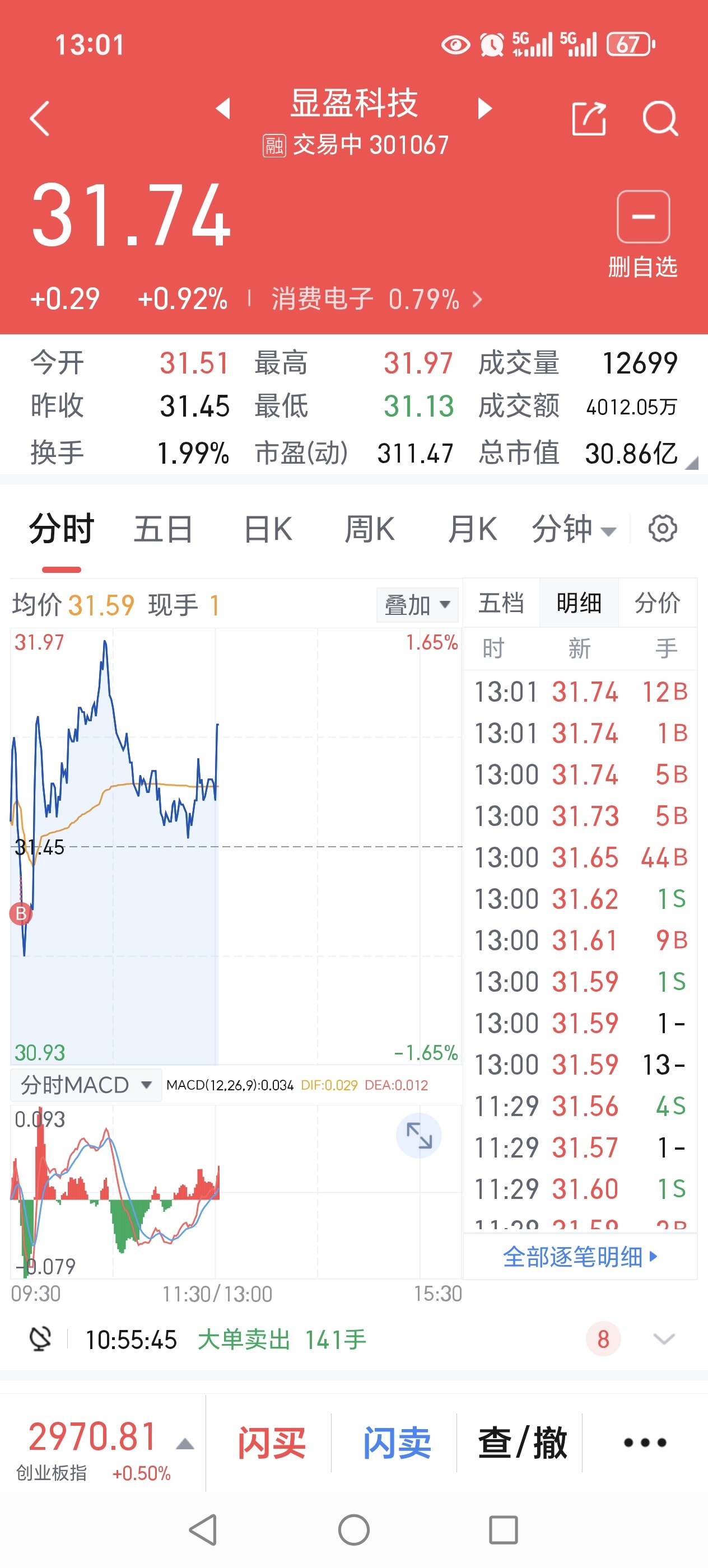 $显盈科技(SZ301067)$ 加自选两年了,一直没交易过,今天建个仓试试