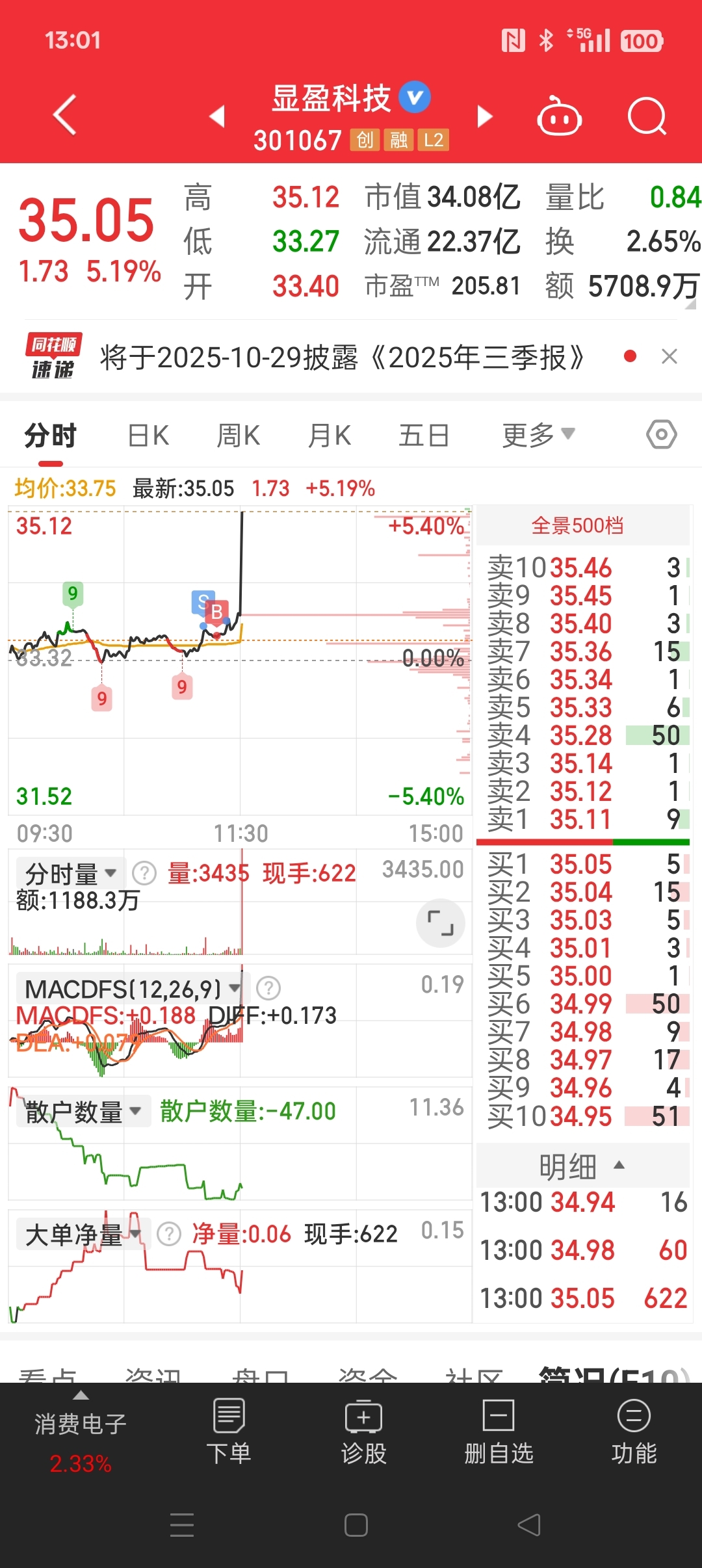 $显盈科技(SZ301067)$ 今天运气好,挂卖的成了买