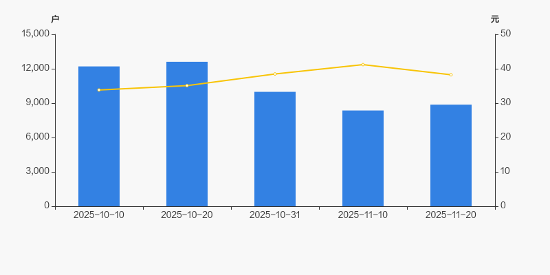 2025年10月10日至今,公司股东户数显著下降,区间跌幅为27.37%。2025年10月10日至2025年11月20日区间股价上涨13.10%。
