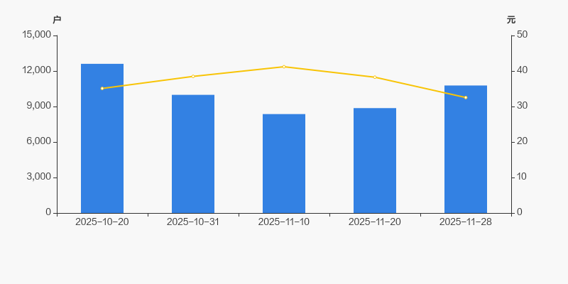 2025年10月20日至今,公司股东户数显著下降,区间跌幅为14.53%。2025年10月20日至2025年11月28日区间股价下降7.30%。