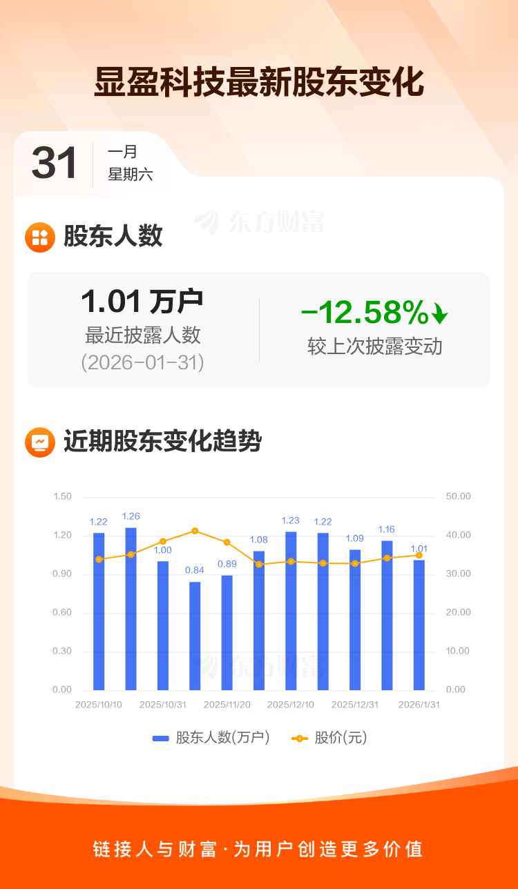 显盈科技:截至1月31日最新股东户数1.01万户,较上期减少12.58%