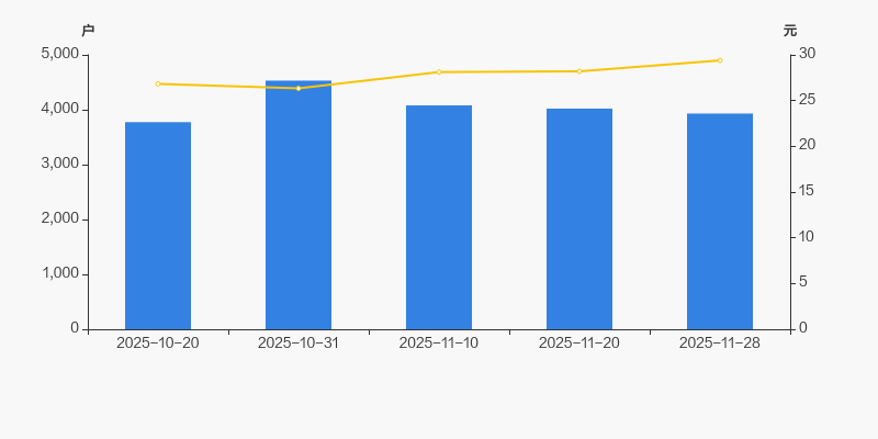 自2025年10月31日以来,公司股东户数连续3期下降,截至目前减幅为13.24%。2025年10月31日至2025年11月28日区间股价上涨11.58%。