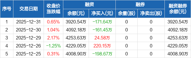 大地海洋:融资净偿还171.64万元,融资余额3920.54万元(12-31)