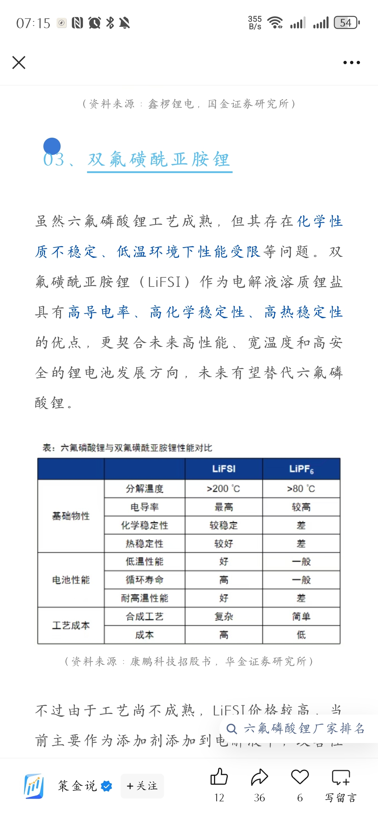6F涨价带动LiFSi,进而带动原材料的氯化亚砜炒作。另外看同有PEEK概念的双