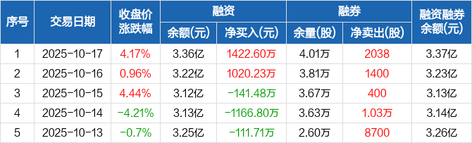 凯盛新材:融资净买入1422.6万元,融资余额3.36亿元(10-17)