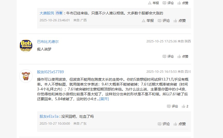 大唐股民就是由于本人跟了一帖浪形分析,观点不一致,就被大唐股民拉黑了。还是吧自己的观点放在自己的帖子下吧。