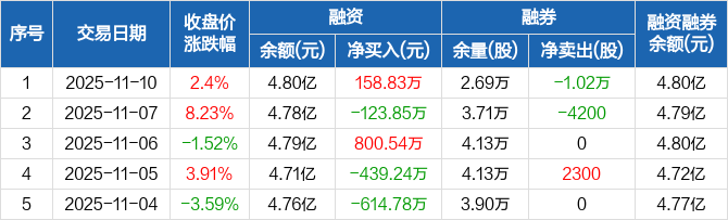 凯盛新材:融资净买入158.83万元,融资余额4.8亿元(11-10)