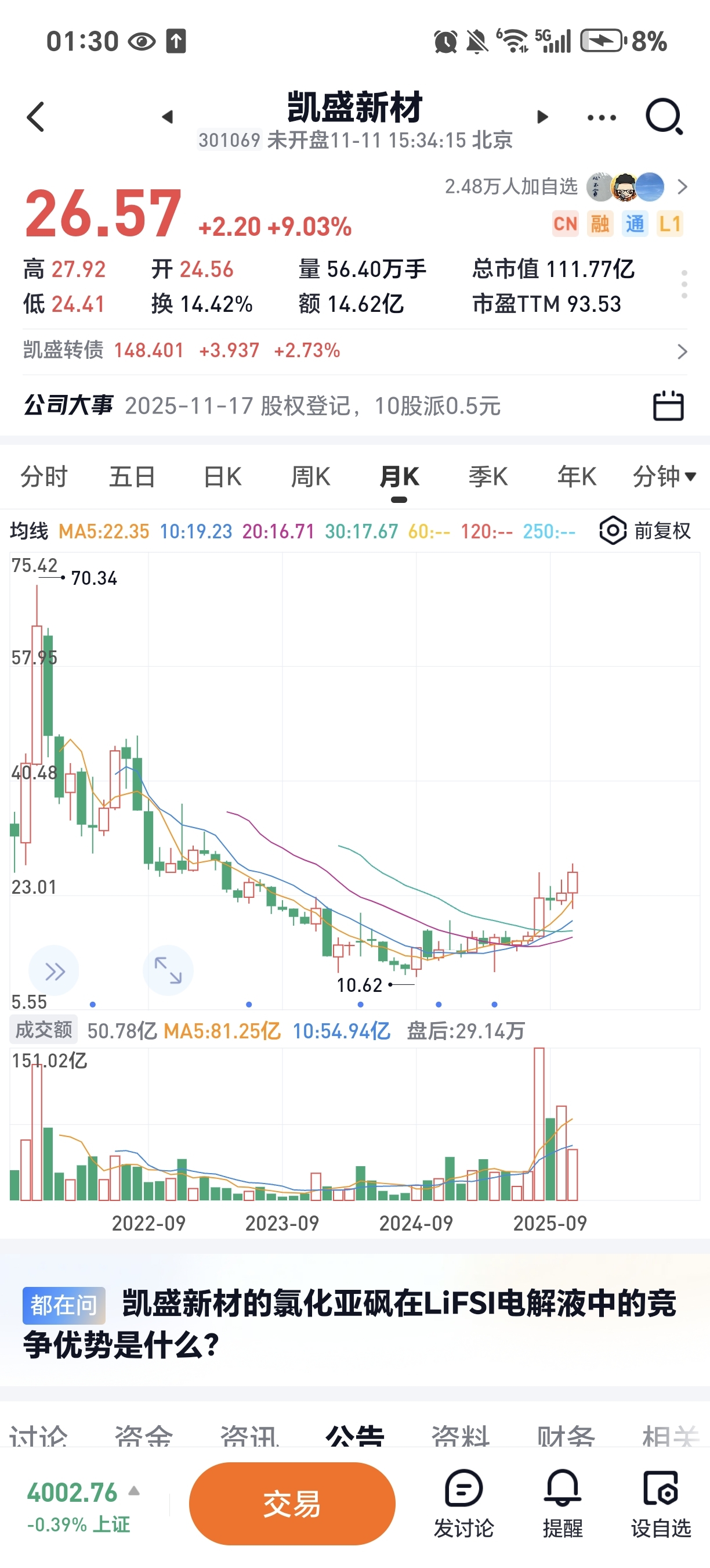 $凯盛新材(SZ301069)$ 参考历史最高价约70元,老法师们觉得今明两年涨回70元的可能性大吗?现在股价26.57元。谢谢!$科创50(SH000688)$ $创业板(SZ395004)$