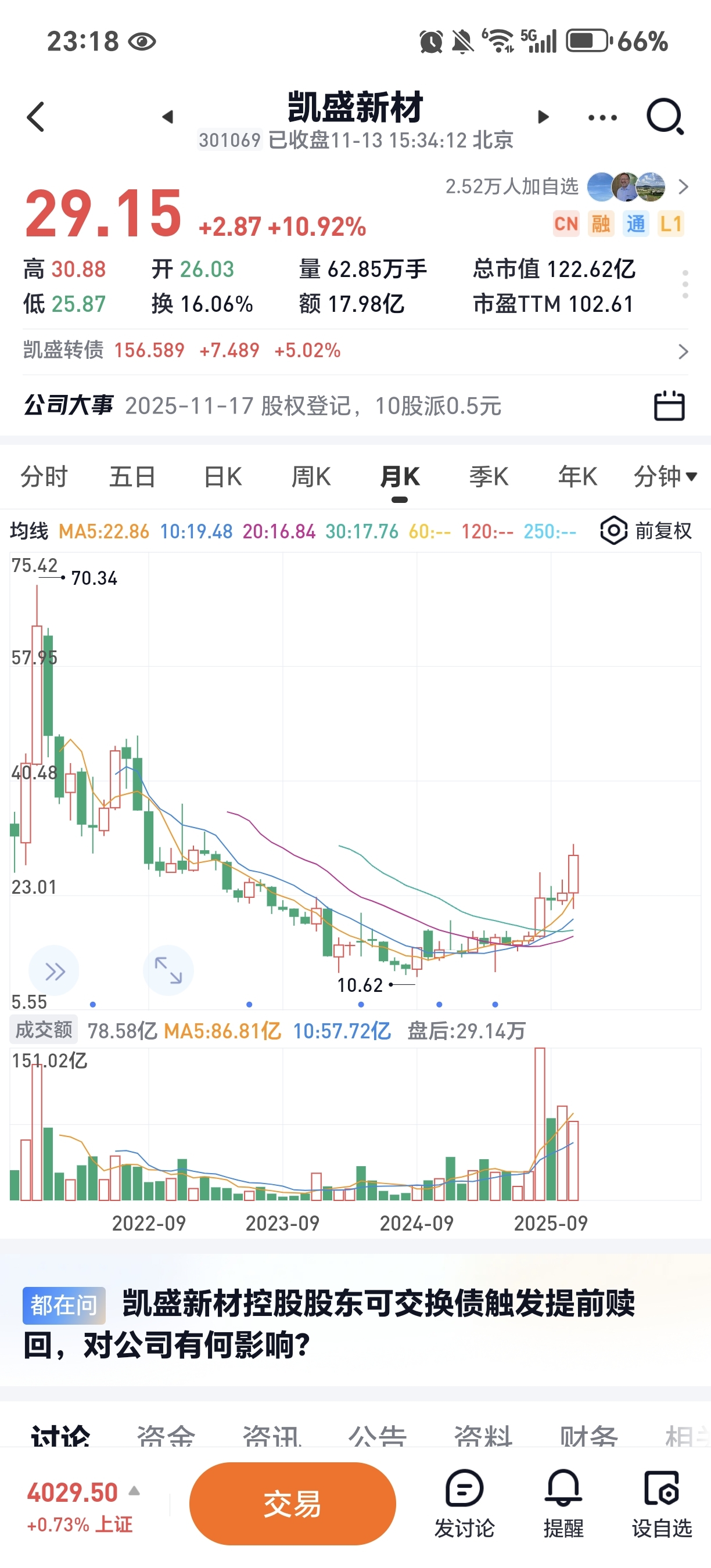 $凯盛新材(SZ301069)$ 请教各位老法师,这轮上涨能不能再涨到70元呢,70-29=41÷29=142%的空间呢,谢谢