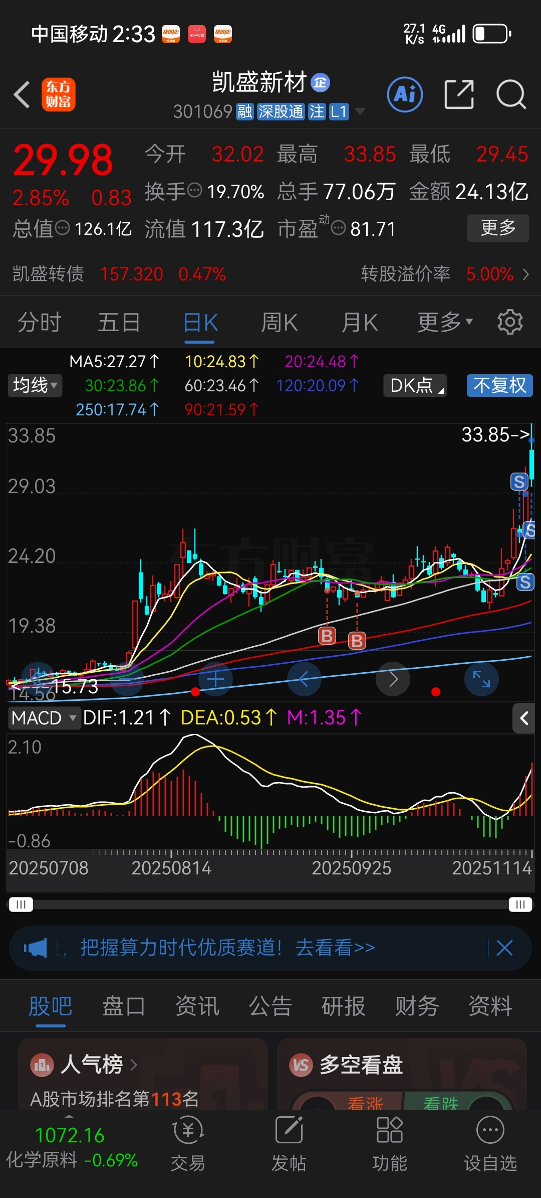 $凯盛新材(SZ301069)$ 使劲跌吧,这是最后一次全部清了,昨天该板你不板,害得我昨天留底仓,可你今天却高开拉升这么多,让我利润少十多个点