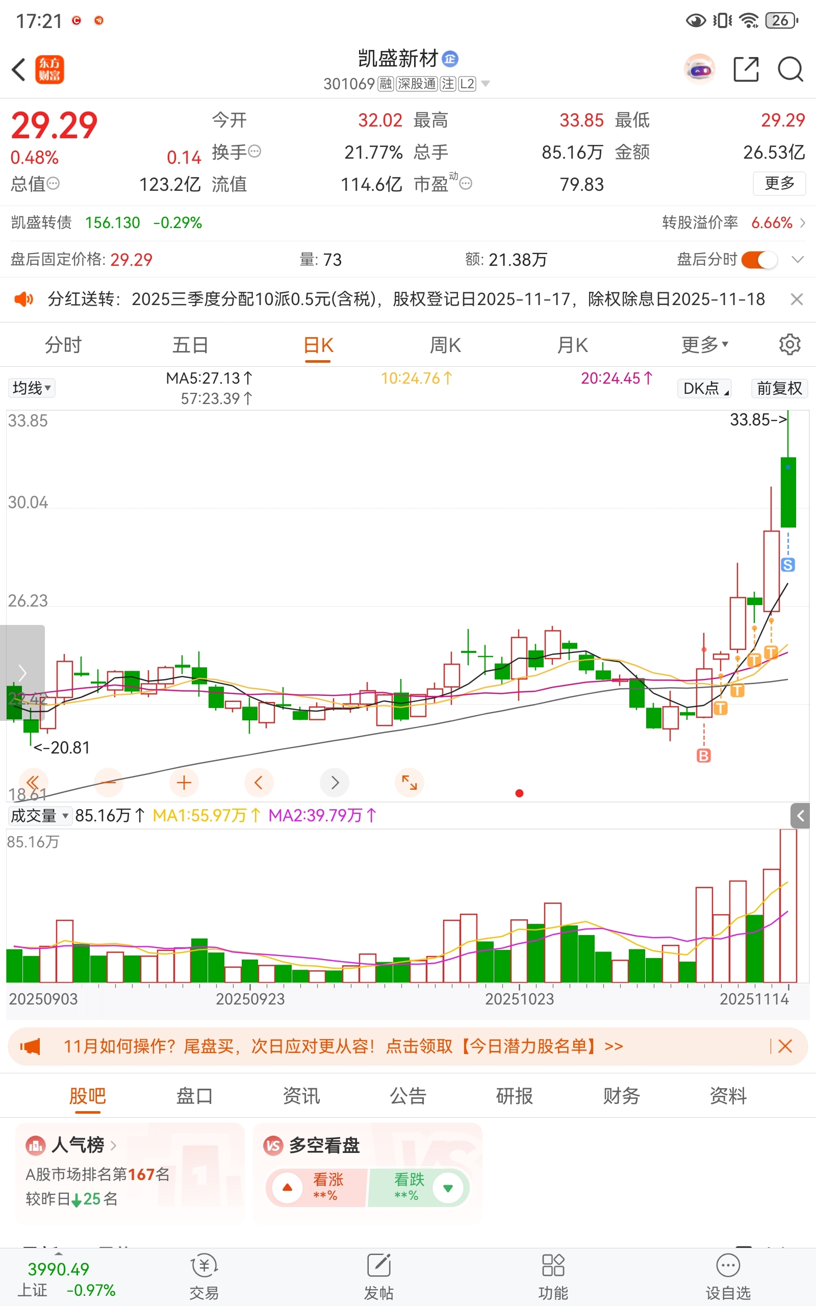 $凯盛新材(SZ301069)$ 拿了5天,今天出了。谢谢主力