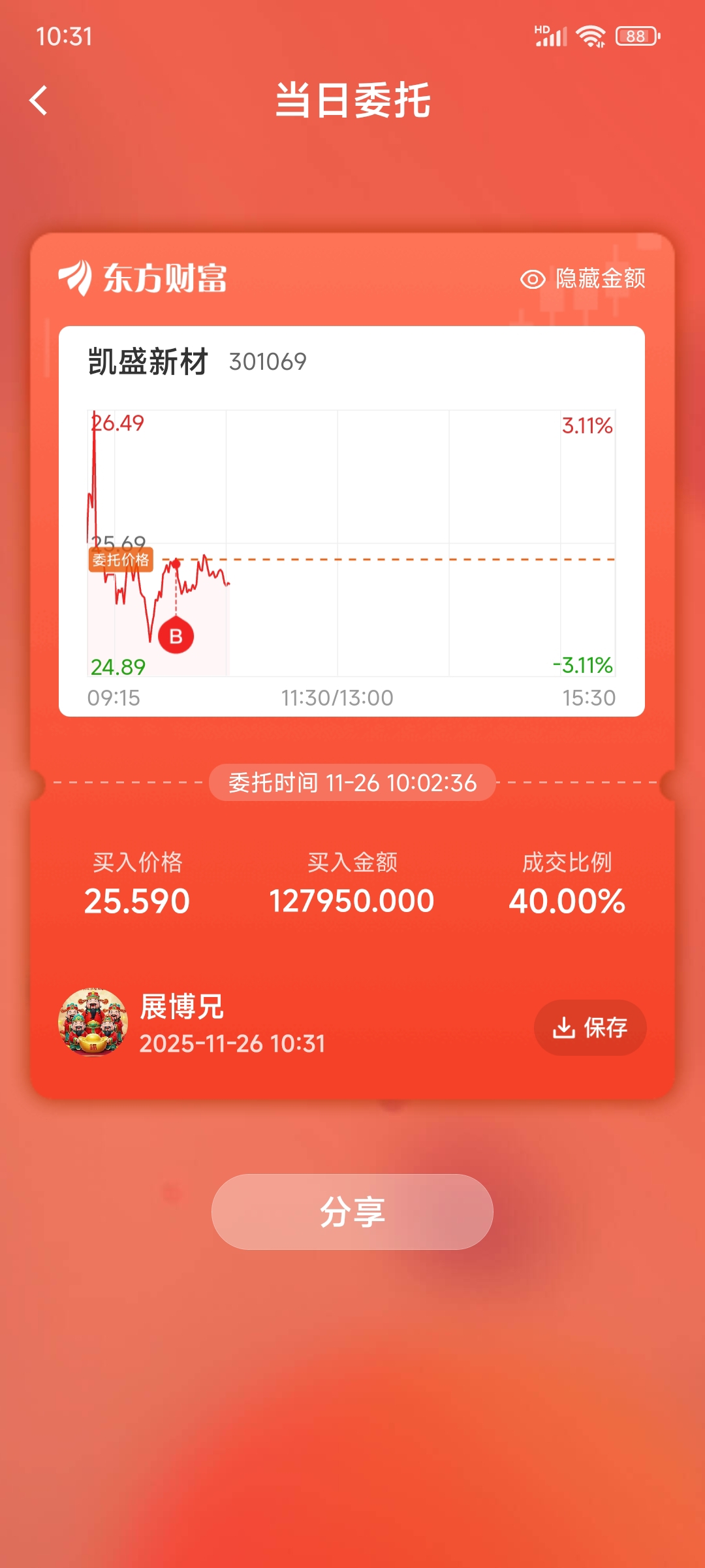 $凯盛新材(SZ301069)$ 不下来就证明要上去,加仓干