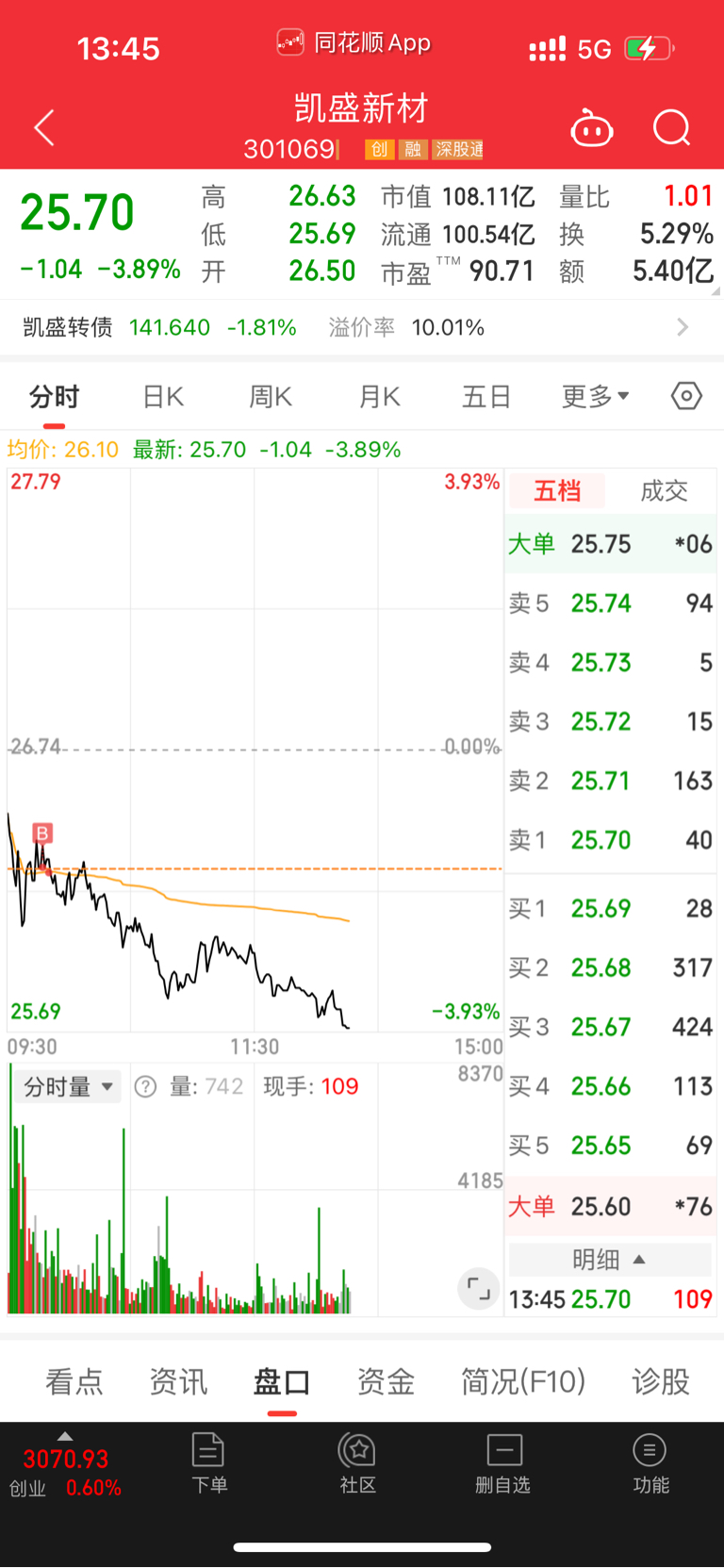 今天最低点收盘,明天还得跌,因为我上午26.3买了22300股,心累,只要我买肯定下跌趋势,销户算了,没法玩,盯着我呢