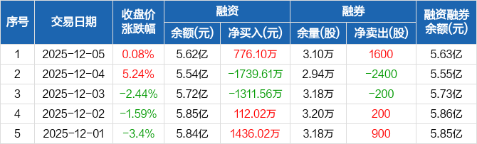 凯盛新材:融资净买入776.1万元,融资余额5.62亿元(12-05)
