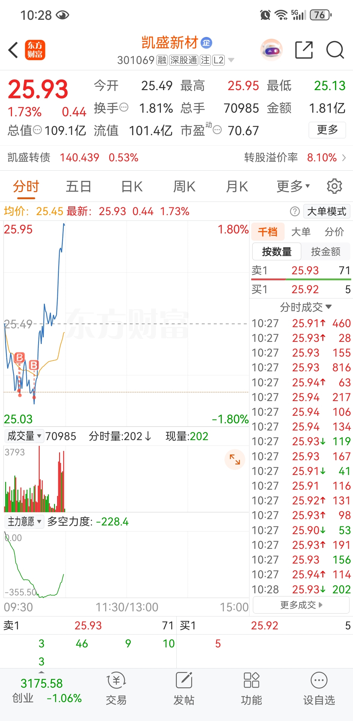 $凯盛新材(SZ301069)$ 30天线下方抄个底#周度策略#