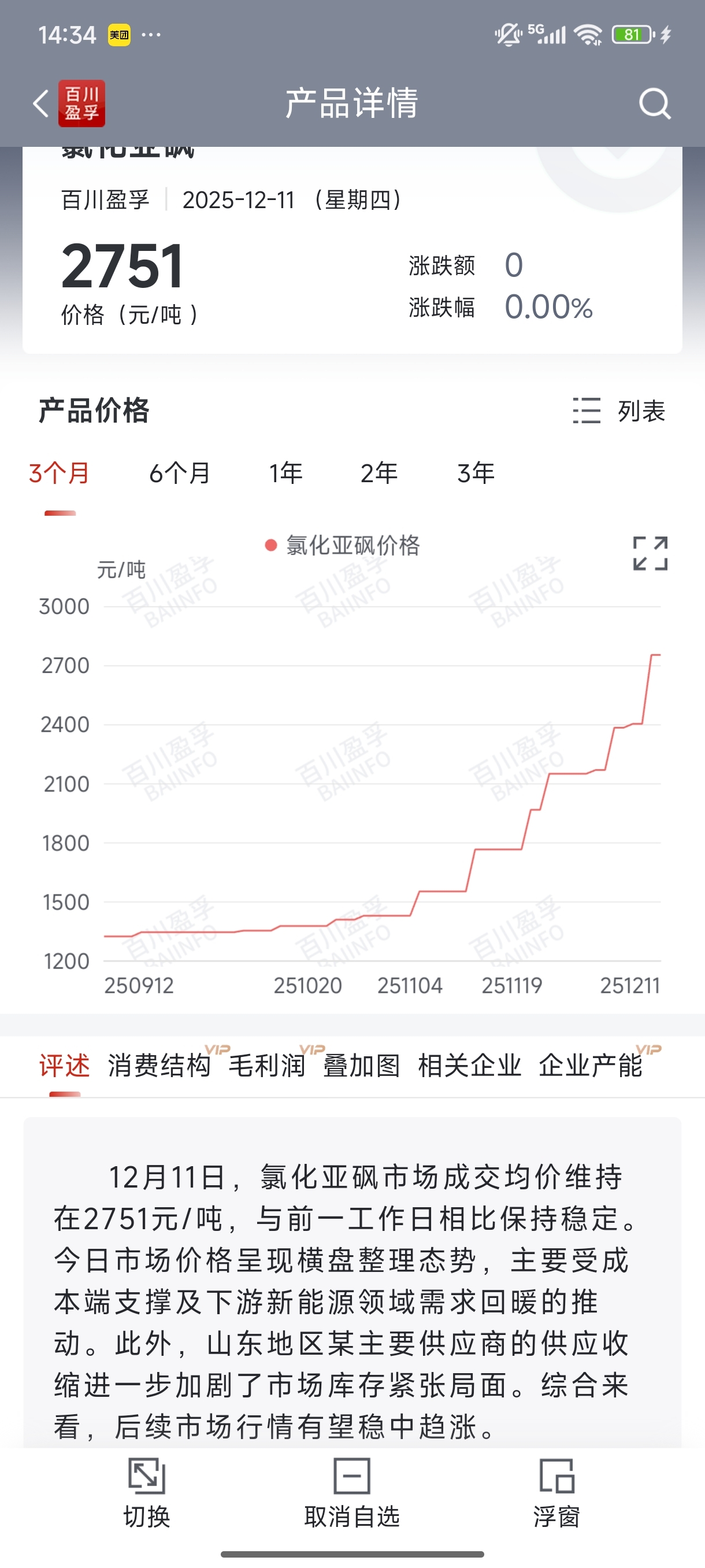 $凯盛新材(SZ301069)$ 很明确告诉大家,根据百川浮盈的今天的论述:山东地区某主要供货商货源紧张,导致氯化亚砜供需紧张。山东地区就凯盛新材,其他世龙,金禾,三友化工都不在山东的。所以,凯盛新材的货其实没有,都是长协价,没多少货供市场。