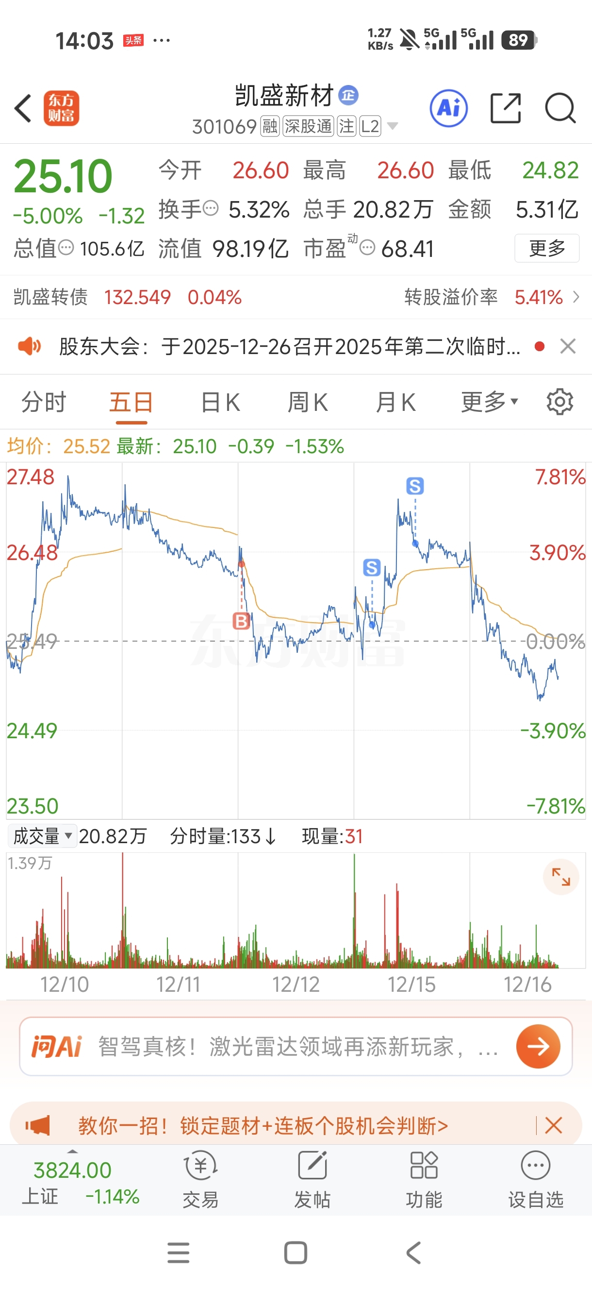 $凯盛新材(SZ301069)$ 幸好昨天把这杂毛卖了,不然又要亏回去了