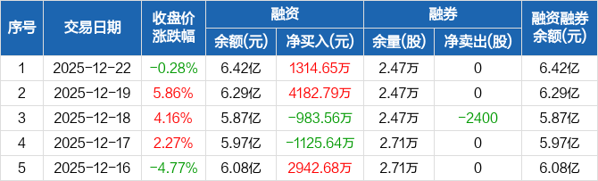 凯盛新材:融资余额6.42亿元,创历史新高(12-22)