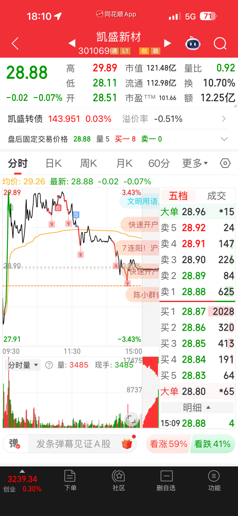 $凯盛新材(SZ301069)$ 服了,这股只能买阴线,天天低开,感觉就是量化在做T。