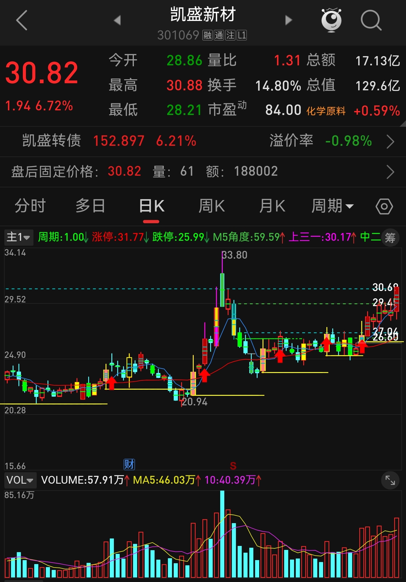 $凯盛新材(SZ301069)$ 前期一波走势后,做箱体小盘整,最近连续几天收阳